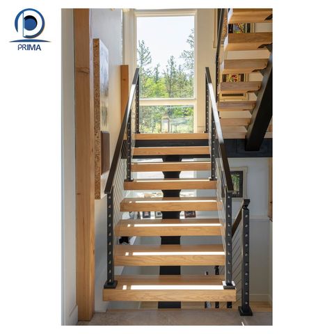 עיצוב morden איכותי הוביל עיצוב הוביל ברזל ישרה סולם פלדה מסמרת עץ מדרגות וילה וילה או מדרגות מלון התאמה אישית